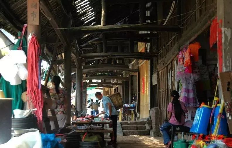 乡民在凉厅街上喝茶聊天