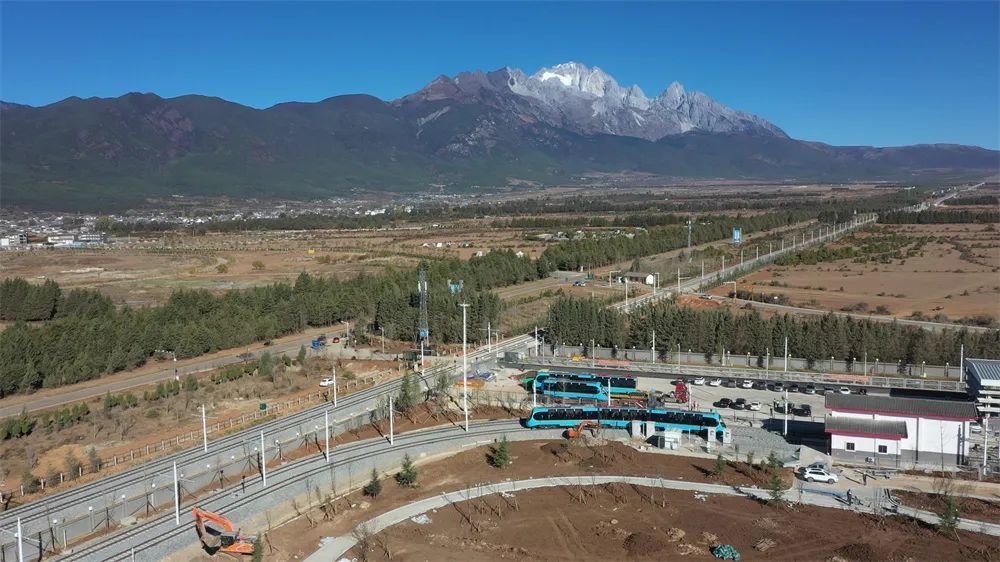 丽江观光火车一期工程(丽江轨道交通一号线)是2020年、2021年云南省“四个一百”重点工程之一,项目总投资30.7亿元,项目起点为丽江游客集散中心,终点为玉龙雪山甘海子,全线长20.47公里,设置游客中心站、白沙古镇站、玉水寨站、东巴谷站、玉龙雪山站共5个站和1座车辆基地。计划将投入列车16列,有一等座(商务车厢)、二等座两种车型,列车能够满足不同游客差异化、个性化乘坐需求。