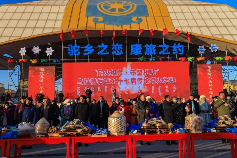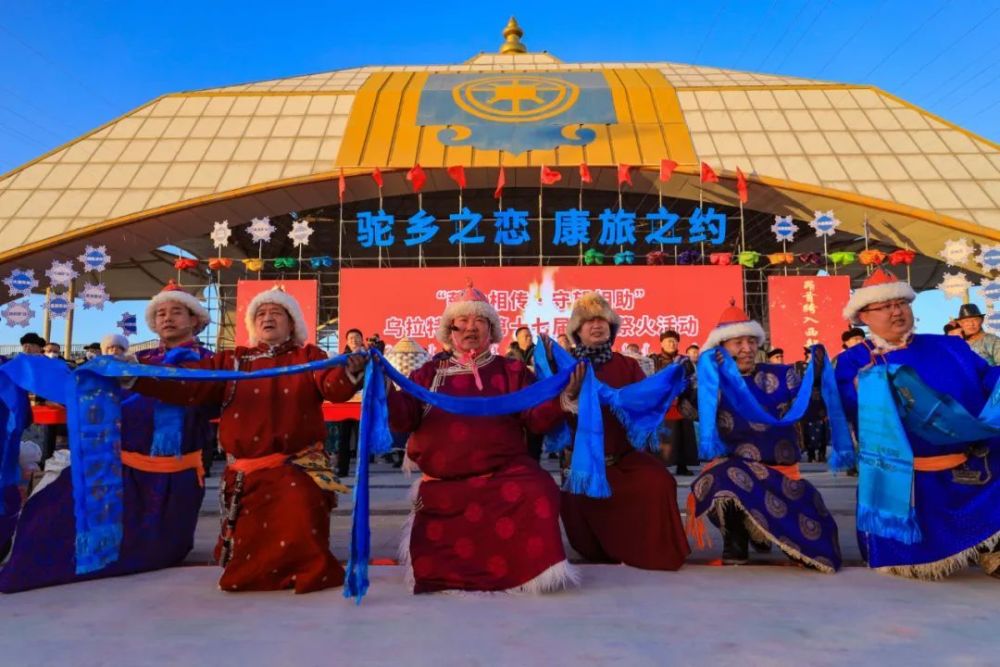 1月14日,“驼乡之恋·康旅之约”乌拉特后旗冬季冰雪文体旅游活动在巴音宝力格镇那达慕会场盛大开幕。各族群众身着节日盛装,载歌载舞,迎接八方宾客,共迎新春。