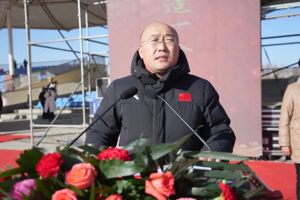 1月14日,“驼乡之恋·康旅之约”乌拉特后旗冬季冰雪文体旅游活动在巴音宝力格镇那达慕会场开幕。旗委副书记、政府旗长毅恒介绍此次文体旅游系列活动。