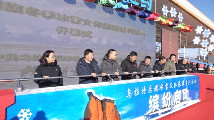 1月14日,“驼乡之恋·康旅之约”乌拉特后旗冬季冰雪文体旅游活动在巴音宝力格镇那达慕会场开幕。庞辉、王亚忠、贺连辉、孟长云、王银保、毅恒、刘雪、张海滨等领导同志共同为活动启幕。