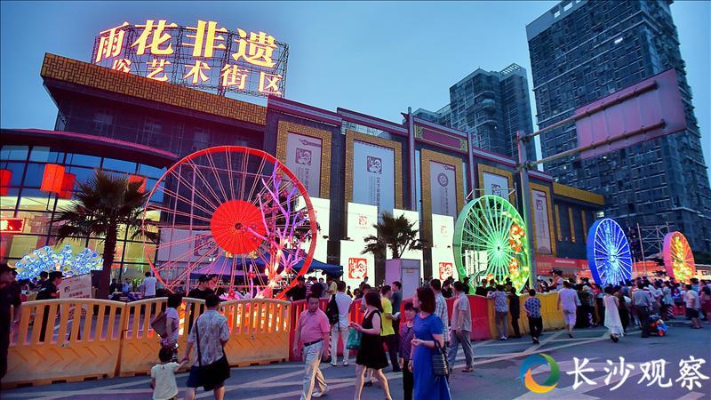 “圭塘河岸”之旅包含湖南雨花非遗馆、红星街区、和+共享图书馆、省植物园、溪悦荟三塘一井等景点。红星街区夜色迷人,文旅消费火爆,2022年8月,被评为国家级夜间文化和旅游消费集聚区。