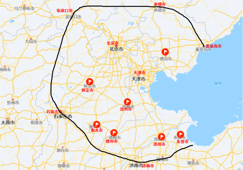 (4)西至石家庄市区,推荐石家庄市游玩景点:石家庄市鹿泉抱犊寨风景区、苍岩山景区 、正定隆兴寺等。