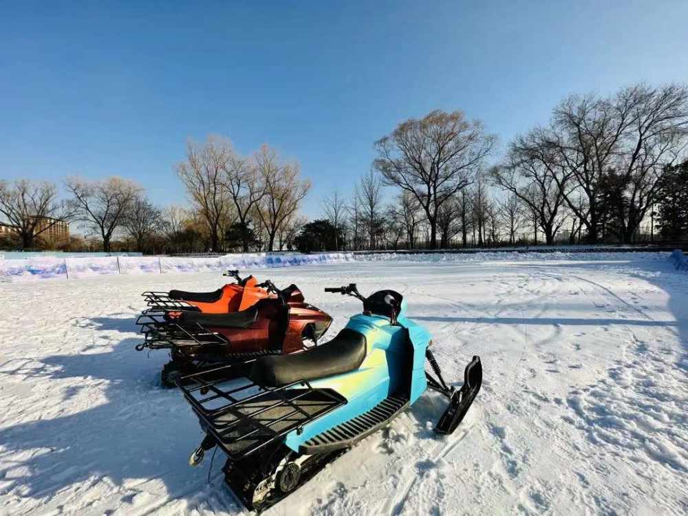 北京温榆河公园打造的第三季“温榆河冰雪节”为广大游客配备了约1000辆冰车,500辆冰上自行车,300辆鲍比冰车,以及悠波球、冰上电动车等等项目设施。此外,今年冰雪节的亮点还包括2万平方米的雪场。