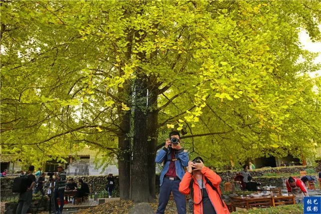 那黄得发亮好似一把把小扇子似的银杏叶,铺满了田边地头、门前屋后。从村庄不远处山顶的观景平台望去,整个村庄坐落在一大片枝繁叶茂的古银杏林中。时值深秋,银杏叶已被浓浓秋意染成金黄,山风轻轻地掠过,片片黄叶纷纷扬扬飘撒而下,宛如漫天飞舞的金色蝴蝶,游客惊呼:这里可能是中国最黄的村庄了!