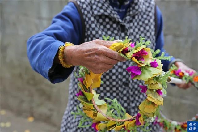 94岁老人陈奶奶,手里拿着自己编织的花环向游客兜售,十元一个,好多游客看陈奶奶年纪这么大还出来 编织花环兜售,都过来帮衬她。