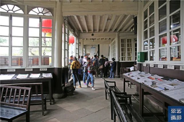 由于和顺图书馆地处祖国边疆,又是由华侨创办、历史悠久,吸引了一波又一波的海外华侨华人、国家政要前往参观,也成为和顺的名片。图为和顺图书馆入口登记处。