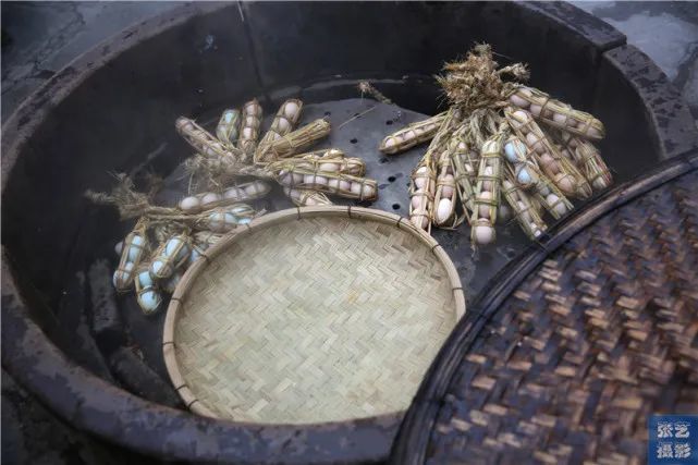 因为水温足够高,当地人在旁边将玉米、鸡蛋、花生放入锅内煮食,生鸡蛋五分钟即可煮熟,其他食物也是立等可取,别有风味。