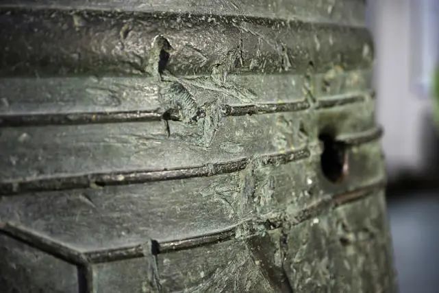 钟体以射击孔为中心,周围留下累累弹痕,钟身铭文损毁十余字。腾冲焦土抗战的这 段辉煌历史,永远铭刻在这座古代的铜钟之上。