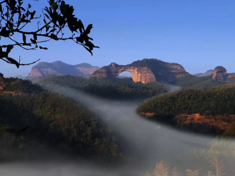 来到飞天山,不“穿坦”是不行的。所谓坦,则是湘南山区一带对“洞”的俗称,其形如同天门,因此又称“天下第一门”。远远望去,它像是一面镜子,定格了蓝蓝天白云,也映照着周遭的山水灵气;它又如横亘于两山之间的一座石桥,静静承载着时光打马而过的脚步。