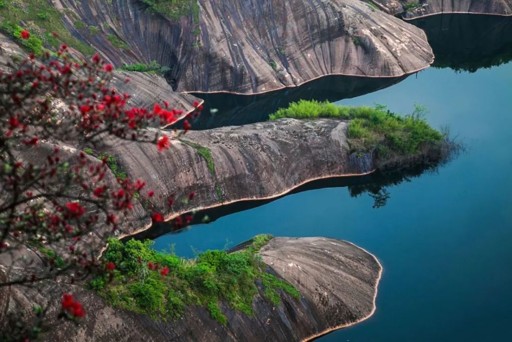 还有自然朴实而又秀美迷人的高椅岭,这里极少有人为的建筑,只有峭拔的红岩,清澈的湖水,一望无际的竹林。