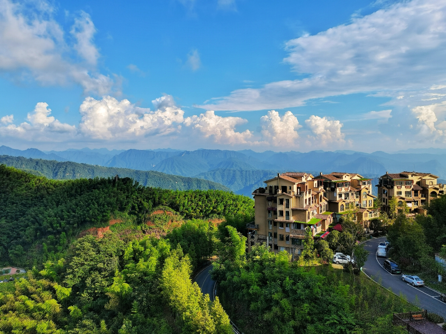 如果天上云彩一般,远方的路,让山挡住了,而路上没有多余的车,那就让路占比多一点。