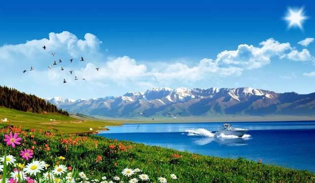 虽然是湖,却浩瀚悠远。碧蓝的湖水,媲美广袤的蓝天,忍不住叫人赞叹。