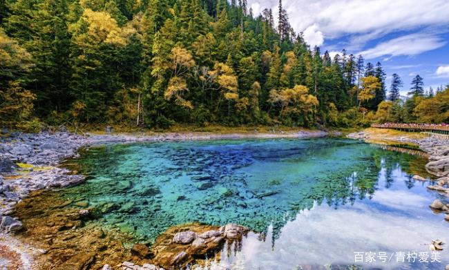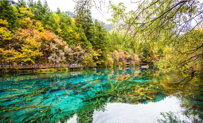 五彩池:五彩池是九寨沟湖泊中的精粹,在同一湖泊中,蔚蓝、浅绿、绛黄、粉蓝相互依存,变化无穷,美艳至极。
