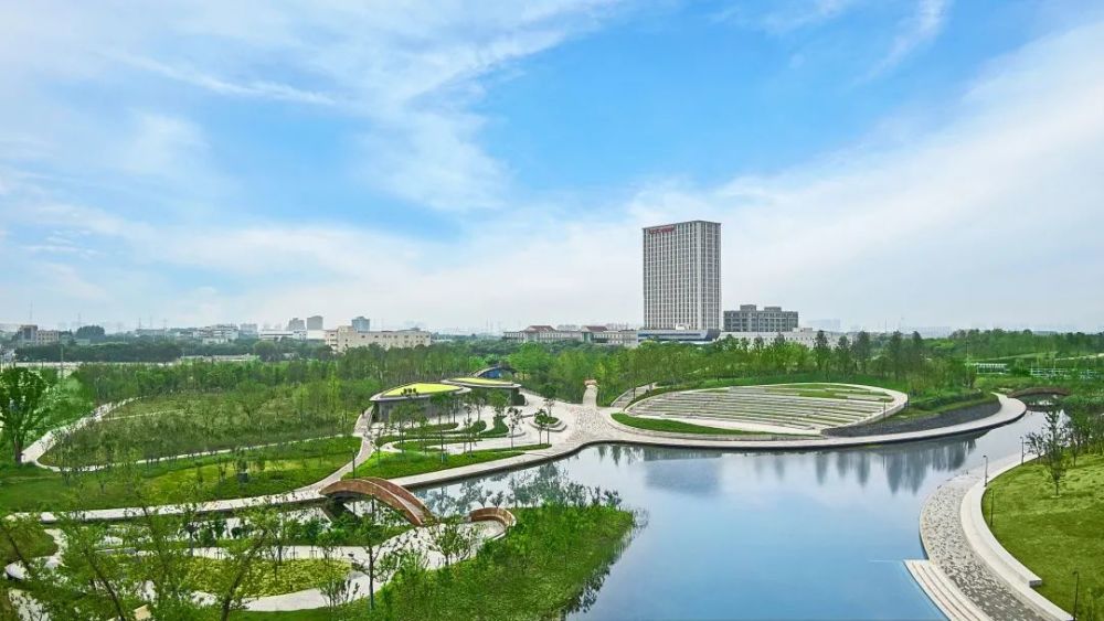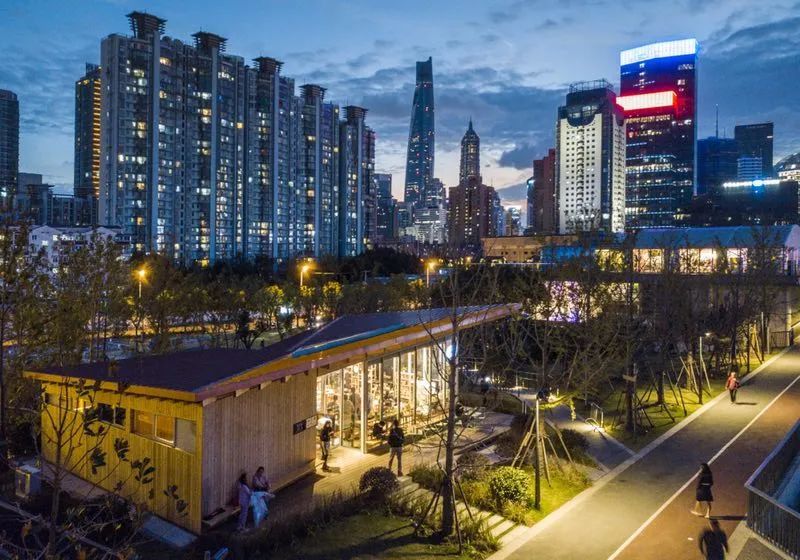 桃浦中央绿地公园是上海城区最大面积中央绿地公园,绿地地势北高南低,从北向南逐渐由北三块的自然休憩山谷林地过渡到南三块的绿色地下商业文化空间,而北拓区域则侧重营造在城市森林中融入青少年户外活动空间。