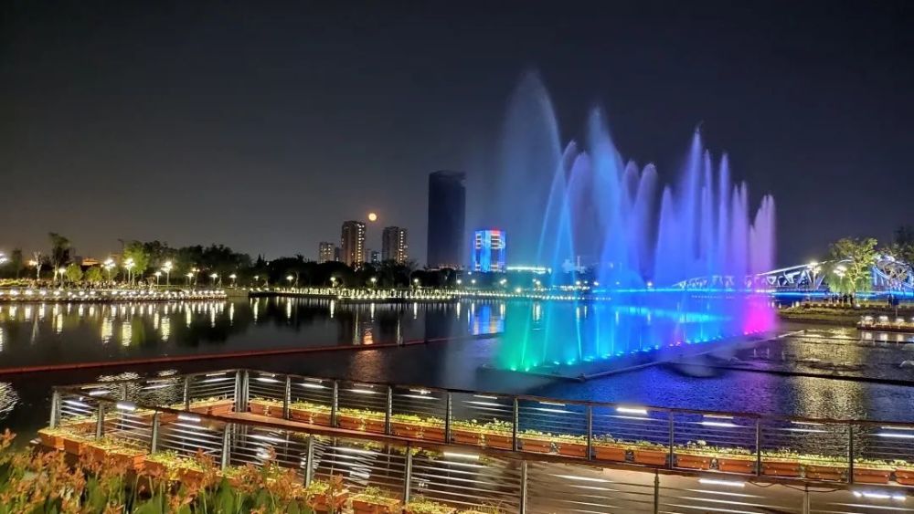 位于城中北路东侧上达河与东大盈港交叉口的“上善广场”,是颇受广大青浦市民喜爱的网红打卡点,由上善驿、上善桥、滨水观光走廊、音乐喷泉、游艇码头等景点组成。每当夜幕降临,音乐喷泉开启,五彩斑斓的水柱在霓虹灯的照耀下,梦幻迷人。