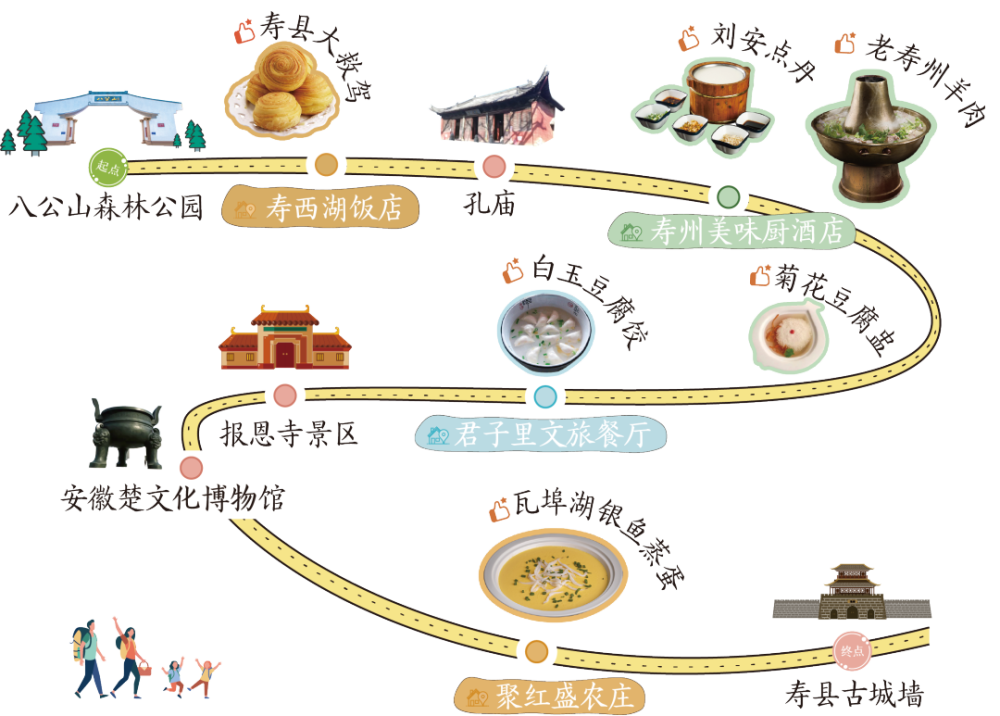 八公山—孔庙—报恩寺—安徽楚文化博物馆—寿县古城墙