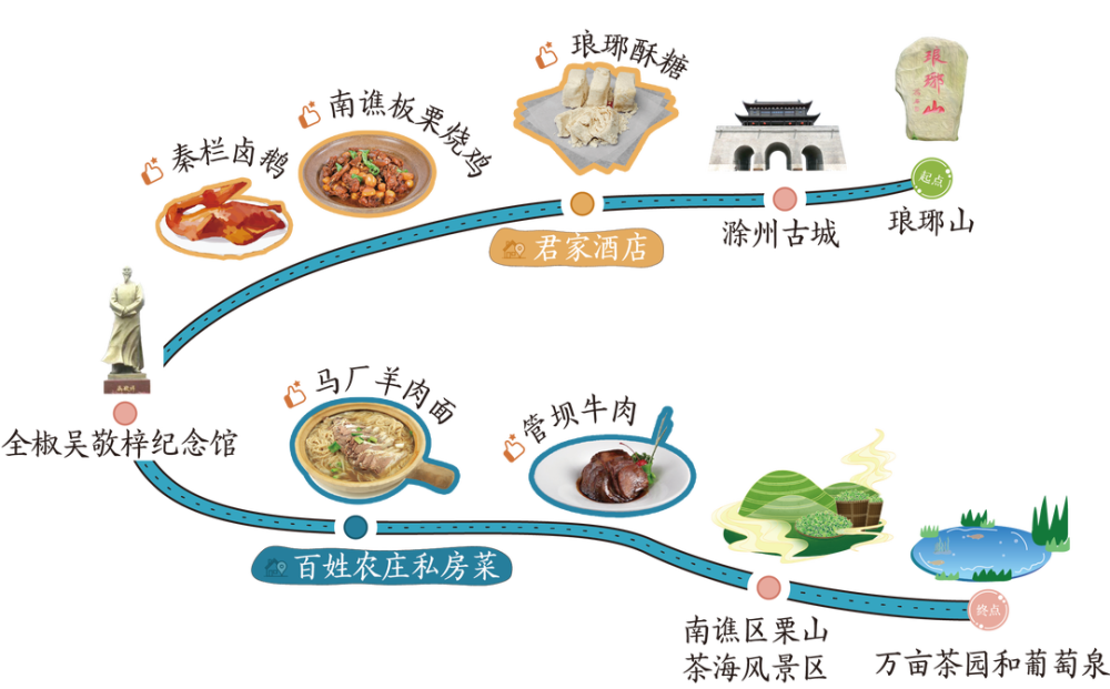 琅琊山—滁州古城—全椒吴敬梓纪念馆—栗山茶海风景区—万亩茶园和葡萄泉