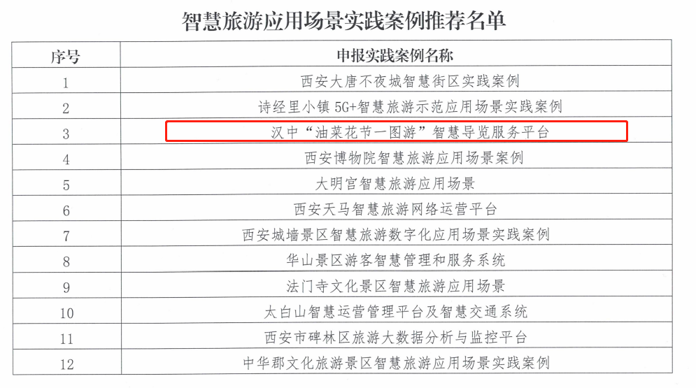 完成“游汉中”小程序服务平台优化改版,打造“油菜花节一图游”智慧导览服务系统,完成汉中旅游资讯网等重要信息系统迁移上政务云;加快实施汉中文旅大数据平台项目,完成文旅大数据中心、智慧文旅综合管理平台等建设子项阶段性开发;深入推进智慧景区建设,高A级景区预约数据和视频监控数据接入率达100%,位居全省第一,精心编制《汉中市智慧示范景区评定管理办法(试行)》,建成华阳、张骞墓、熊猫谷3家智慧示范景区;积极打造5G+文化旅游等应用场景,全面完成5G示范城市创建、智慧感知之都、数字经济等年度建设任务。