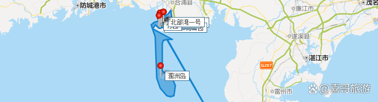 北海市花公园自驾至涠洲岛,需在北海港乘船上涠洲岛,全天游玩涠洲岛,下午乘船返回北海再自驾至海城区。行程结束。