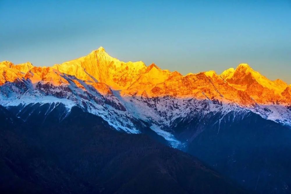 当清晨的第一缕朝阳,把"梅里雪山"主峰"卡瓦格博"染成了金色,那耀眼的金色让每个人心潮澎湃,内心震憾。