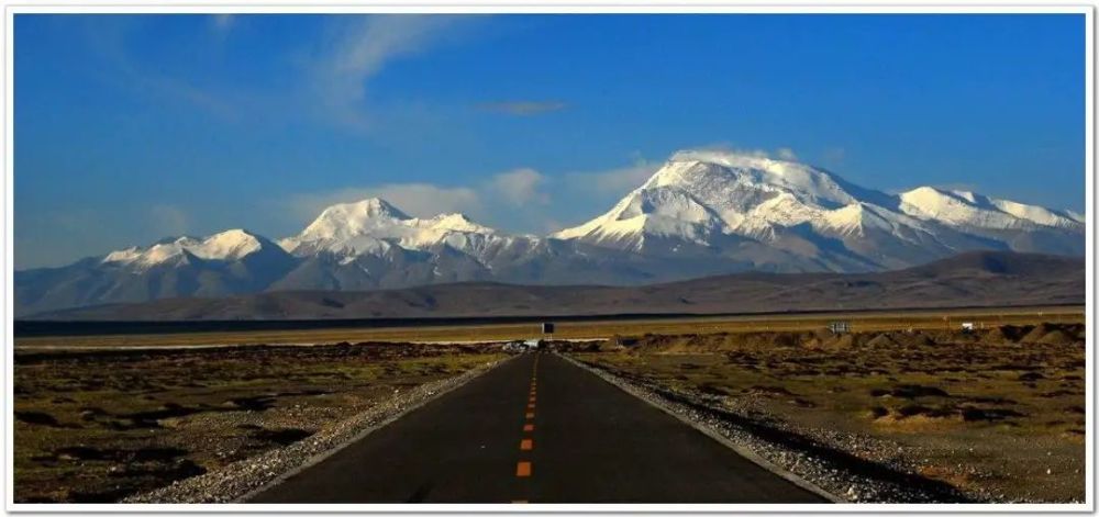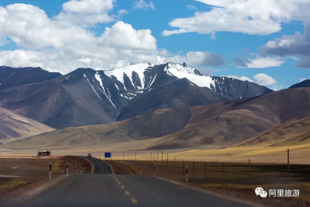 在昆仑山脉与喀喇昆仑山脉之间行驶,两侧高耸的雪山气宇轩昂。