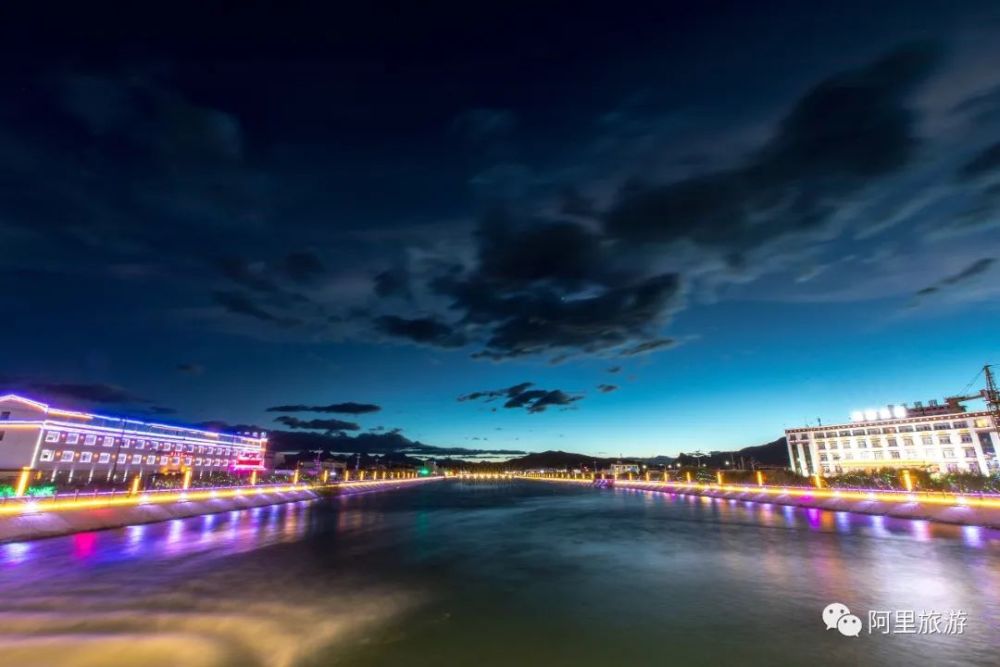 狮泉河两岸的灯光让清澈见底的河水也披上了一层彩衣,这一晚可以好好休息一下了。