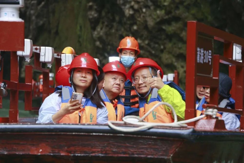 踩线期间,一行人亲身体验土家十三寨民俗表演以及特色长桌宴,感受回音壁的奥秘,领略蒲花暗河“三天两夜”的奇妙,打卡“世界第一风雨廊桥”绝美夜景,多方面多角度了解黔江旅游景区。