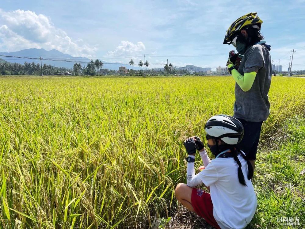 富力湾乡间小道旁成片稻谷正待成熟,孩子们尝试剥开谷壳见米粒真容。