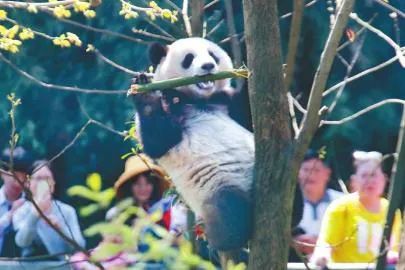 “小朋友特别喜欢这里,景区里有大熊猫,路上也有各种萌萌的大熊猫造型。”5月3日下午,来自重庆的李茂雨一家在碧峰峡景区游玩,带孩子看了一场熊猫啃竹子的“吃播”,参加了特色“科普小课堂”。