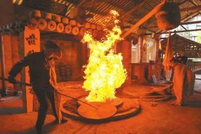 不少游客到荥经,总要起个大早,到砂器作坊内看砂器出窑的场景。在作坊内,砂器在1200摄氏度左右的馒头窑里被烧得通红,约一小时后,一窑砂器便烧制好了。一直以来,当地砂器匠人都采用古老的人工烧窑方式,烧制出一件件精美而又不雷同的荥经砂器。
