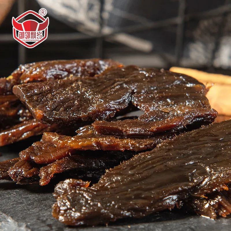 据记载, 明永乐 5 年间(公元 1405 年),建文皇帝因避乱来到邻水县善庆里(今御邻镇),寻找旧臣天官(吏部主事)杜景贤,建文皇帝路经御临镇,向一牧人家借碗水喝时,建文皇帝对牧牛人家 嘘寒问暖,其牧人家女主人热情奉上秘制的牛肉,帝见其纹理 清晰,色泽棕红诱人,逐食之,捋须道“好肉也”。临别时牧牛人家将秘制的牛肉赠送建文皇帝。由此得来的“御邻飘乡牌牛肉” 品牌历史悠久,始于传统,忠于品质,始于年代,继承传统配方。“御邻飘乡”牌牛肉干,薪火代代相传希望我们用一生的时 间去深研卤烹煮烘烤等技术。产品精选上等牛肉作为原料,经 秘制的多种天然香辛料的卤制,采用传统工艺,经过多道工序 制作而成的特色牛肉干有:香酥牛肉、麻辣牛肉、芝麻牛肉、 手撕牛肉、牛肉干等系列,形成了经久不衰的独特风味。其肉 质细嫩,口感纯正,丝丝入味,香飘四溢。“御邻飘乡”牌牛肉干, 一直被当地的人们给追捧着,并且将“御邻飘乡牌牛肉”以地方特产方式赠送亲朋好友。