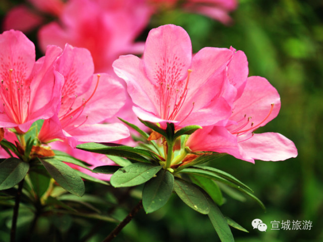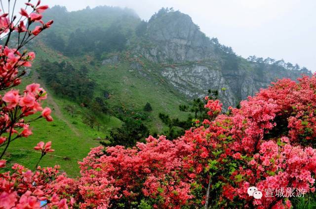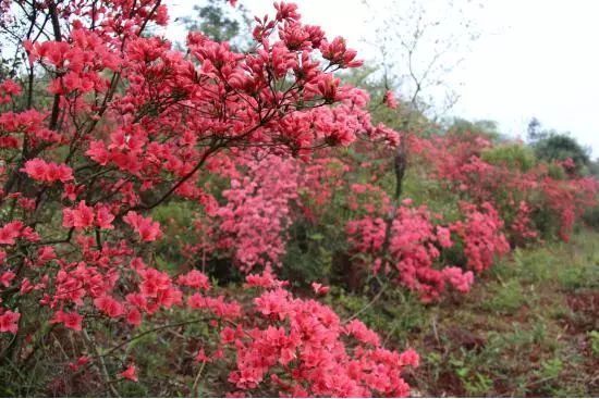 除此,漫山遍野的映山红,亦是一道靓丽风景。诗仙李白的诗篇《宣城见杜鹃花》中的千古名句:蜀国曾闻子规鸟,宣城还见杜鹃花。映山红的花期为四至五月份。