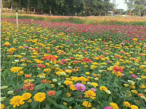 主要品种为芝樱花、百日草、波斯菊3类,种植地分两部分,一块在大门入口处为芝樱花,预计4月底开放。第二部分在河对岸百亩农田,主要品种为百日草和波斯菊,预计5月份开放