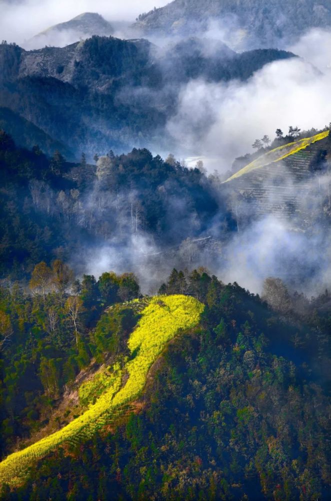 观赏油菜花,家朋的梅干岭梯田便是最好的地方。每年三月,金黄色的油菜花盛开在层层梯田,错落有致、层次分明,白墙黛瓦的徽州村落藏匿在花海丛中,远处群峰高耸,构成了一幅立体多层次、色彩鲜亮的田园图。绩溪县梅干岭在2013年获得了“中国美丽田园”、“安徽摄影协会创作基地”称号,是欣赏全景油菜花最佳地点。