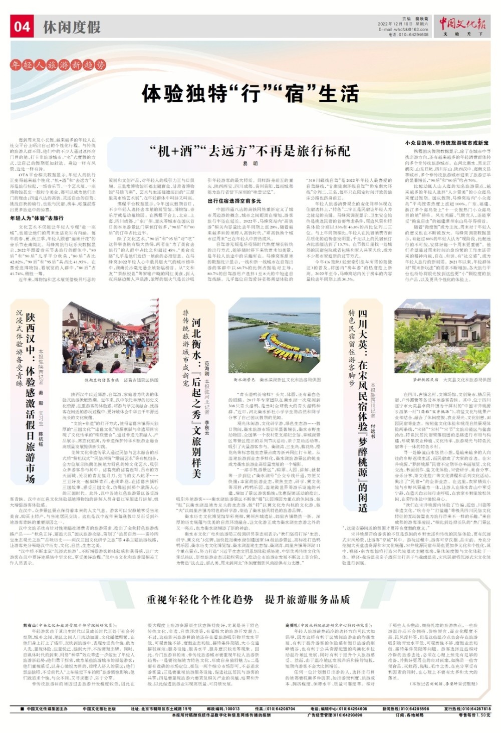 年轻游客由于其出生时代以及成长时代正处于社会转型期,城乡之间、地区之间人口流动加速、文化碰撞频繁,在他们身上打上了烙印,反映到旅游中,表现为崇尚个性、敢为人先、重视体验、注重悦己,脑洞大开、不按常理出牌。同时,自媒体时代的到来、网络“种草”效应等进一步催生了年轻人旅游新趋势:他们勇于探索,成为某些旅游城市的原始游客;他们重视感受,以身心愉悦为目的,排斥人挤人的景区;他们想法独特,不受前代人“上车睡觉下车拍照”旅游惯性影响;他们既追求个性、与众不同,又寻求圈子、乐于分享。
