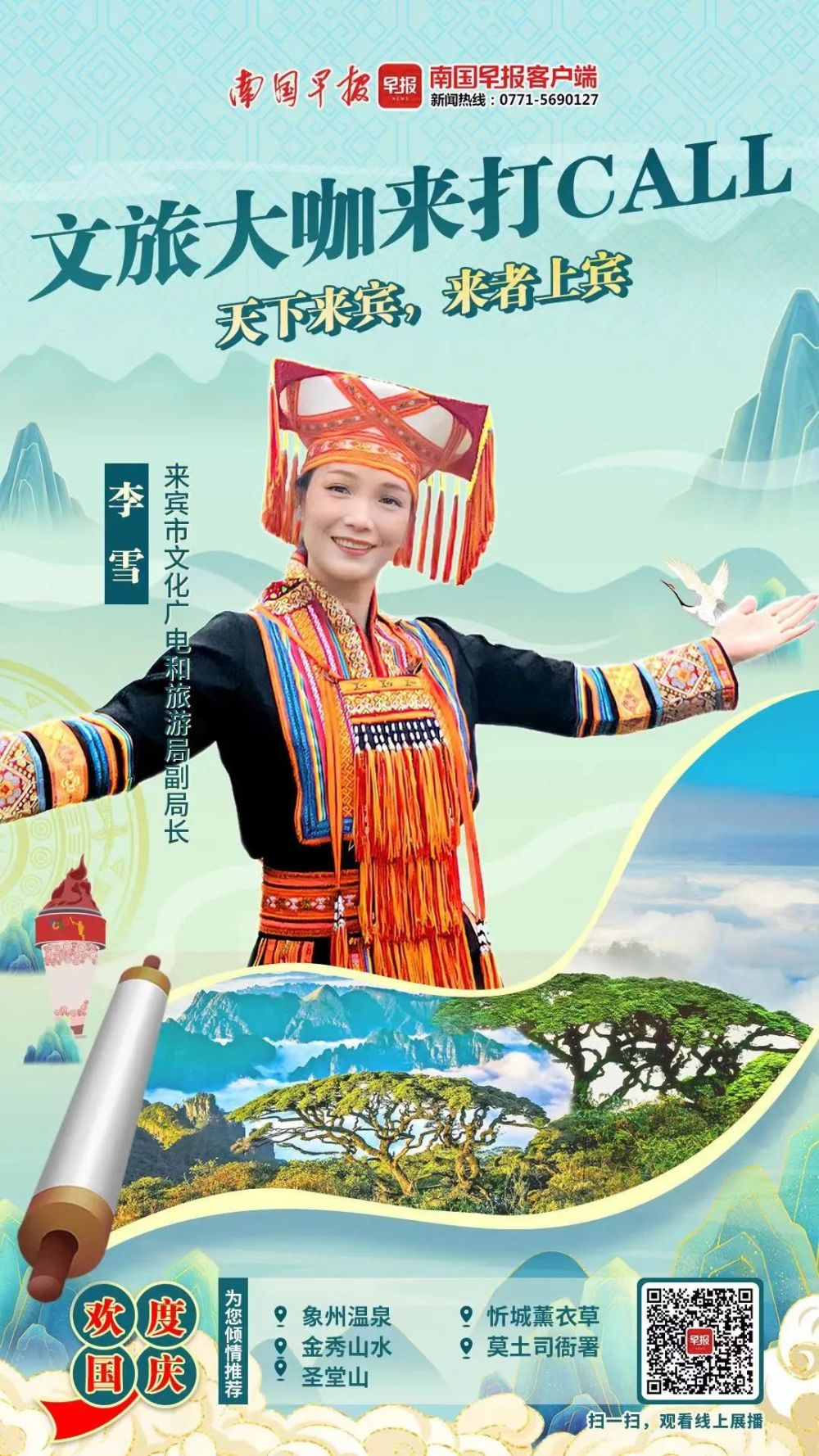 请您到世界瑶都金秀,开启圣堂仙境醉氧之旅;再到滨湖仙城武宣,敲开古庄园群落的门窗;到“中南第一泉”象州,体验温泉冰火两重天;到壮乡故宫忻城,领略莫土司衙署千古遗风;到中国观赏石之乡合山,探访浓缩百年的煤矿记忆;到世界体操王子李宁的故乡兴宾,感受蓬莱秋籁与文辉夕影……
