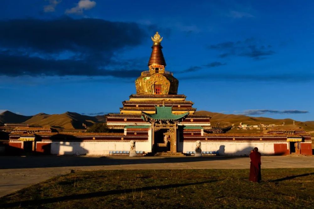 早餐后前往莲宝叶则,这是一处逐渐被人们了解的秘境,这里的冬季更值得你一去。冬季莲宝叶则的海子都会结成蓝冰,天气好的话太阳会将冰面上的积雪晒掉,这个时候蓝冰就会暴露出来,在蓝天下航拍冰面真的很美。各莫寺应该是自驾路线中最惊艳的一个点,而且网上所有的行程里几乎都不会去到这里,它是三大格鲁派寺庙之一。