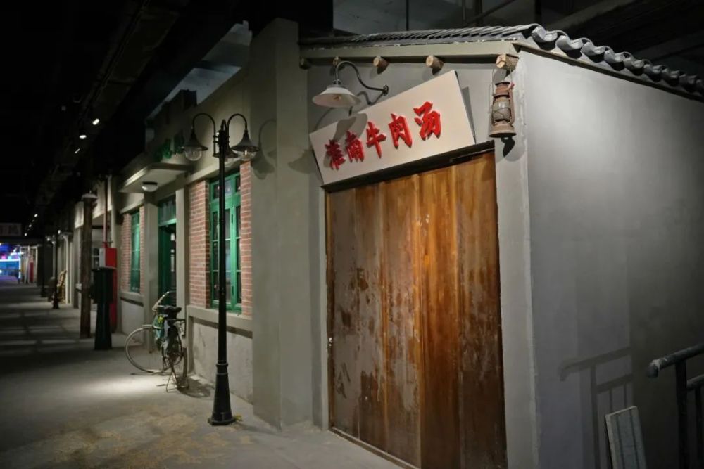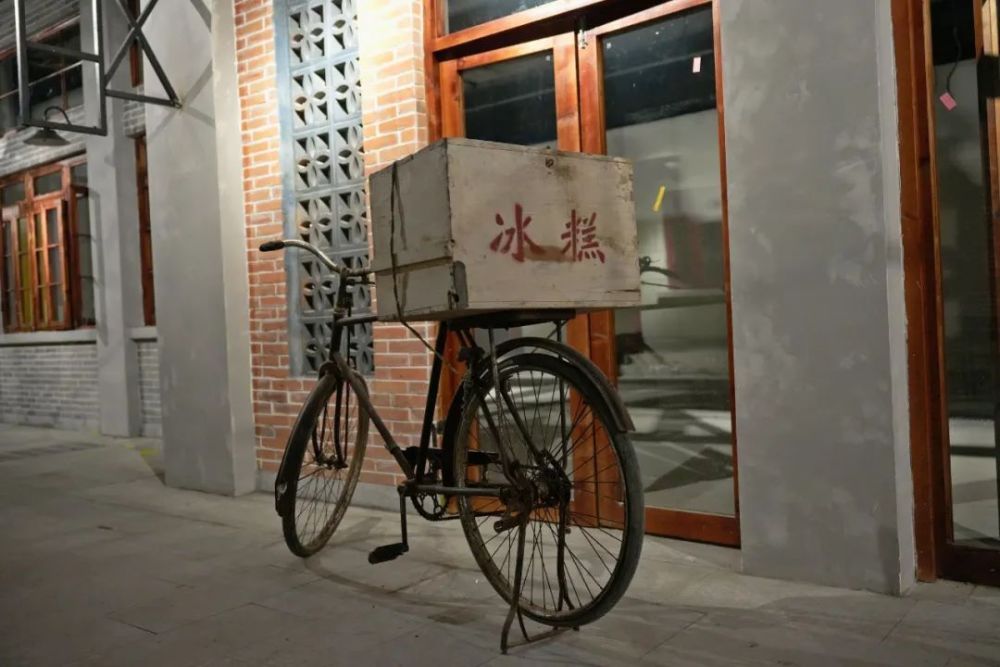 在广场内,不光有复刻的老式建筑,一些细节之处也很能引起人们的共鸣,每走几步就能看到建筑两侧设置了老式的长条椅,坐在椅子上,回想起曾经的青葱岁月,学校里谈心,医院里候诊,车站里等车,都曾坐过这样的长条椅。还有泛着微弱亮光的马灯,充满历史感的冰糕箱子……都让人收获无数回忆与感动。