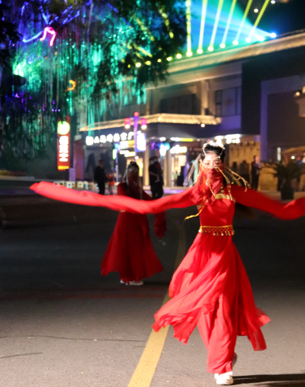 身穿一袭红衣的快闪舞者,舞动着轻快的脚步,在长城脚下、文化街区尽情展现着独特的靓丽风采,用自己的快闪舞步舞出了对长城的敬仰、舞出了对祖国的热爱,通过独特的艺术创作形式为祖国庆生,并为游客带来全新的夜游体验。