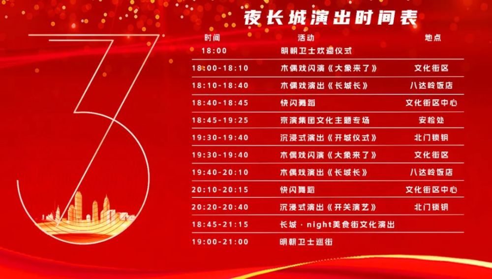 十一“黄金周”后,八达岭夜长城即将迎来2022完美收官。假日期间,美誉度颇高的八达岭夜长城全面上新古风红衣快闪、京演集团系列文化演出、八达岭少年使者“知了团”研学活动,同时颇受好评的快闪《大象来了》、木偶剧《长城长》等活动依旧热度不减,轮番上演的精彩活动为祖国共同庆生,也为广大游客假期出游带来全新的夜游体验。同时,八达岭长城“夜巴士”直通车发车,由北京城区直达八达岭夜长城,往返接驳,为游客节省出宝贵时间,轻松实现美好夜游体验。