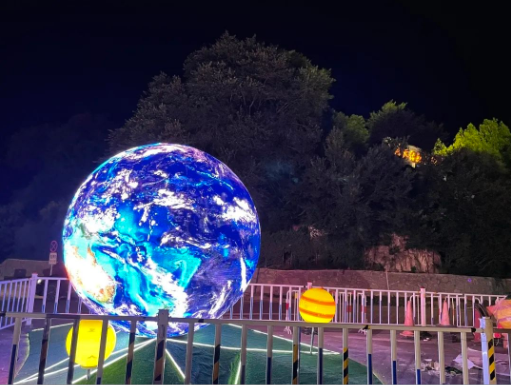 夜长城入口,迎宾星球正立体式展示着长城的壮美风光和夜长城的各项活动。漫步在文化街区,两侧的树光木影萦绕于心间,地面上的投影描绘着四季变幻,“幸福树”“不到长城非好汉”文化墙、“茶马互市”铜像雕塑都是绝美的网红拍照地,更有小朋友们十分喜爱的“孟姜女”动画片展映在墙体上,处处都是打卡点,无一不让人流连忘返,心旷神怡。坐上“长城铛铛车”,畅游整条文化街区。