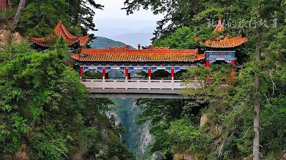 自驾游甘肃定西,登上了漳县贵清山。贵清山为石灰岩地带,刀锋般的山尖上长着苍翠的古松,酷似崆峒山,却更骨骼清秀。其中一座飞驾两崖的石桥让人拍手叫绝。