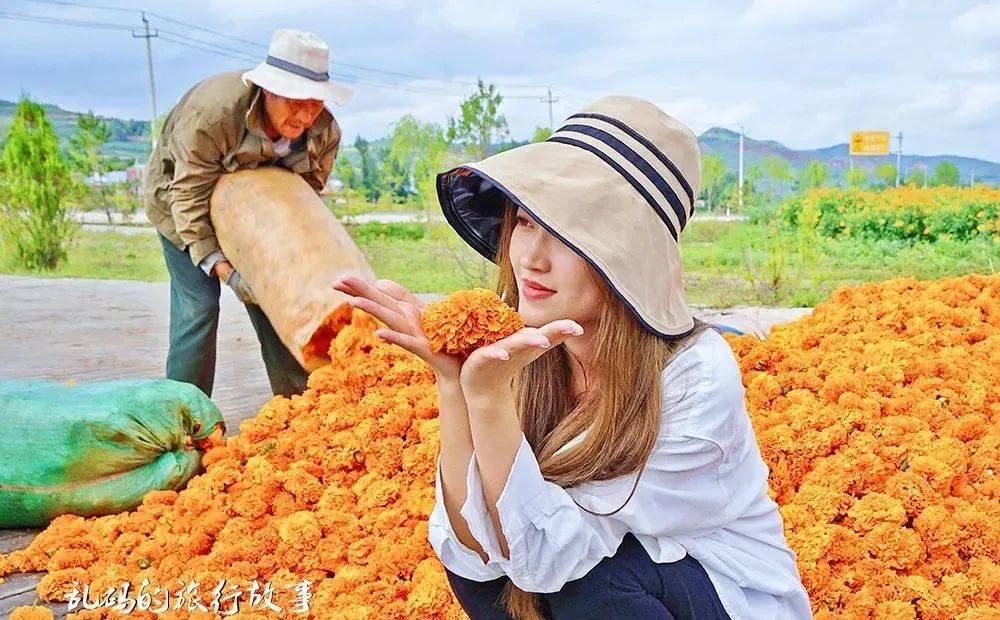 甘肃定西渭河源的鸟鼠山下,千亩万寿菊正在怒放,开车路过此地被花海气势磅礴的芬芳震撼到了。赶紧停车拍照。
