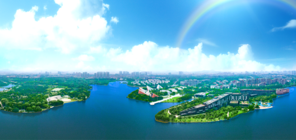 松山湖生态景区,依托8平方千米的淡水湖区,环湖建成了30多公里的曲折蜿蜒的亲水湖岸线,沿线打造了荷香水榭、烟雨亭、虹桥、情人湾、月牙湾、睡莲池、黄金竹海、桃源公园、阳光沙滩等系列景观景点。其中“松湖烟雨”核心景点烟波浩渺、湖鸟轻鸣、云蒸霞蔚,因其旖旎风光被莞人票选为“莞邑新八景之首”以及市民最喜爱的十佳景点之一。