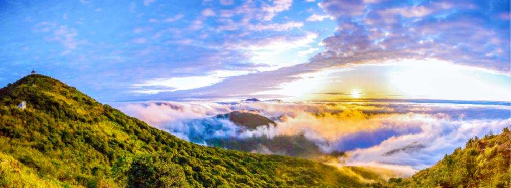 银瓶山森林公园总体规划面积123.5平方公里,是东莞面积最大的森林公园,位于谢岗的主峰银瓶嘴海拔898米,为“东莞第一峰”。这里层峦叠嶂、溪谷幽深、竹木苍翠、景致宜人。公园内动植物资源丰富,是名副其实的“植物王国、雀鸟天堂”。
