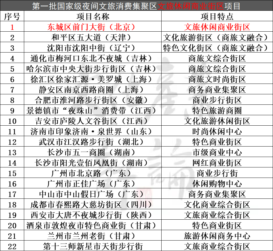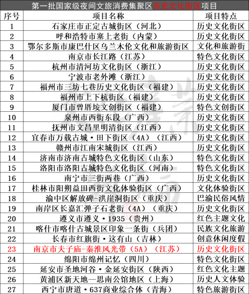 在首批入选的120个国家级夜间文化和旅游消费集聚区项目中,涉及历史文化街区、特色文化街区、主题文化街区等集聚区共有27个,占总项目数的22.5%,是各类项目中入选数量最多的消费集聚模式。