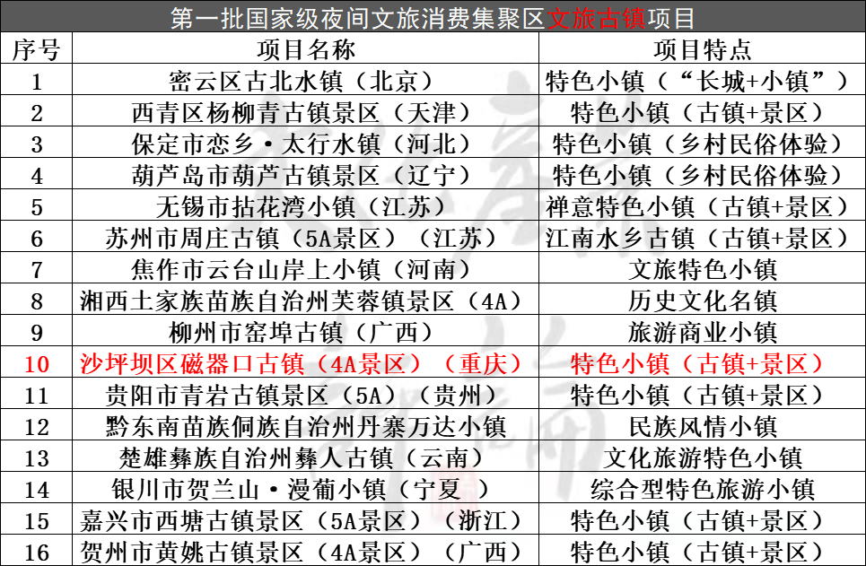 例如,此次上榜的重庆沙坪坝区磁器口古镇,始建于宋代,是嘉陵江边重要的水陆码头,拥有“一江两溪三山四街”的独特地貌。近年来,重庆市大力加强历史文化遗产保护,推动巴渝民俗文旅圈建设,磁器口古镇成功创建为国家AAAA级景区、中国历史文化名街、成渝十大文旅产业地标,年接待国内外游客达300余万人次,再现了曾经“白日里千人拱手,入夜后万盏明灯”繁盛景象。