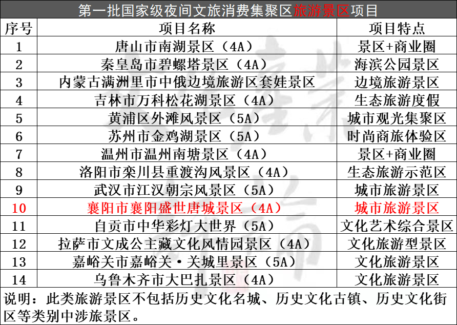 在首批120个国家级夜间文化和旅游消费集聚区中,涉及旅游景区(不包括历史文化名城、历史文化古镇、历史文化街区等景区)项目共有14个,占总项目数的11.67%。其中,国家5A级景区6个、国家4A级景区8个,多为城市观光、文化旅游和时尚商旅体验型景区。