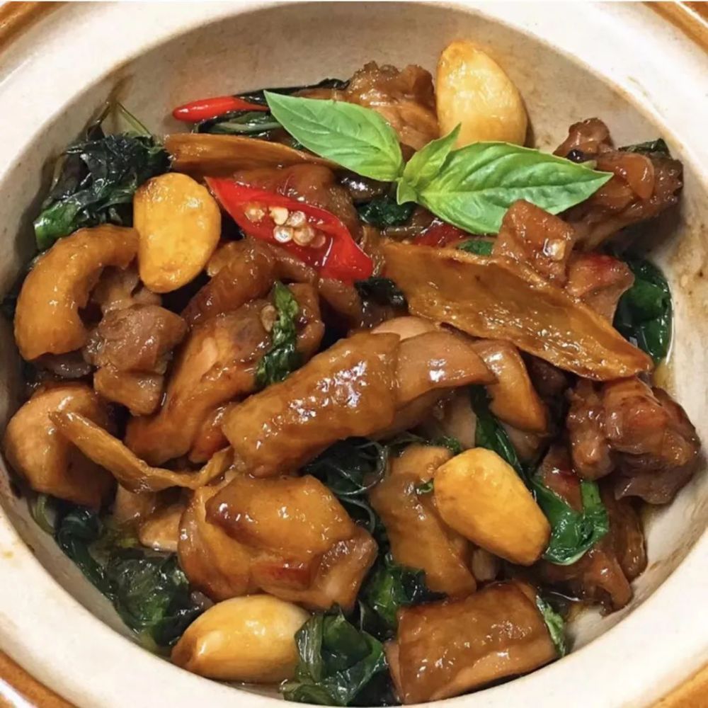 沾染着罗勒叶的特殊香气的三杯鸡,鸡肉清香,咸香适中,真香警告!(听说蒋介石也曾为它疯狂打call)